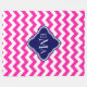 Monogramed pink and white with dark blue accents chevron zigzag geometric pattern