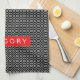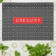 Elegant white and black modern geometric pattern with customisable monogram and red accents.