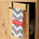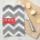 Monogramed White And Grey Chevron Pattern 2 Tea Towel