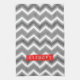 Elegant dark and light grey and white zigzag chevron pattern. Customisable monogram and red accents.