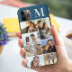 Monogrammed photo collage iPhone case which you can personalise with 7 of your favourite photos and your initial. The template is set up ready for you to add your photos, working top to bottom on the left side, then top to bottom on the right side. The design has a teal peacock blue background and your initial is printed in modern serif typography. Please browse my store for alternative styles.