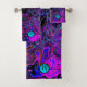 Personalise the Monogram on this Cool Groovy Bath Towels Set that features a Trippy Black, Purple and Magenta Retro Liquid Swirl with Marbled Hot Pink, Orange, Aqua and Purple Accents. The result is a cool, psychedelic, groovy, abstract design that you will love!