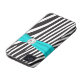 Monogrammed Aqua, Black, White Zebra Striped Case-Mate iPhone Case