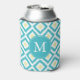 Monogrammed Aqua Yellow Ikat Diamonds Pattern Can Cooler