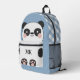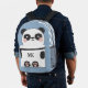 Monogrammed Ash Blue Cute Panda Kids Printed Backpack