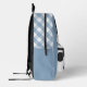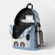 Cute kids backpack in ash blue with a blushing panda with cute little paws and your child's initials in a quirky hand writing font. Send your child back to school with this cute animal backpack with a black and white panda with blushing cheeks and adorable little paws. Panda backpack in blue personalised with your initials.