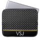 Monogrammed Black and White Polka Dot Pattern Laptop Sleeve