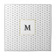 A black polka dot pattern is on a white background. Black monogram is on a white square in the centre. The square has a faux (no foil) gold trim.