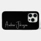 This monogrammed black iphone 15 pro case is trendy yet and classic. It features your name in a fabulous modern script font in white. It's simple and minimal.