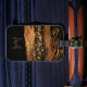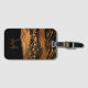 Girly modern animal print luggage tag in brush strokes with copper, gold, glitter, black and adorned with your script monogram, first name and initial.