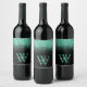 Monogrammed Black Mint Glitter Script Wine Label