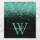 Monogrammed modern wine labels in black and aqua glitter, elegantly adorned with your script monogram, first name and initial.