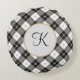 Monogrammed Black White and Gold Plaid Round Pillo Cushion
