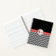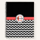 A custom spiral notebook with a black and white chevron pattern. You can personalise this product by adding your own initial and name to the centre of the monogram logo.