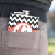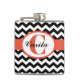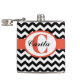 A custom 6 oz vinyl wrapped flask with a black and white chevron pattern. You can personalise this product by adding your own initial and name to the centre of the monogram logo.