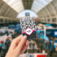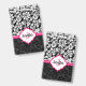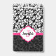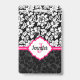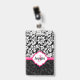 Monogrammed Black White & Pink Damask ID Badge