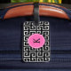 Monogrammed Black, White, Pink Geometric Pattern Luggage Tag