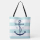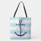 Monogrammed Blue Anchor on Mint Stripes Tote Bag