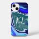 Monogrammed Blue and White Marble Fluid Art iPhone Case