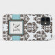 Monogrammed Blue Brown Damask Case-Mate iPhone Case