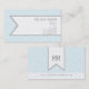 Blue zig zag pattern background featuring a label on the right written a model name and address info, which can be easily changed by your own text, name, monogram or tags. The back features your monograms and web address.
