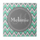 Monogrammed Blue & Grey Chevron Pattern Tile