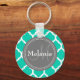 Monogrammed Blue & Grey Quatrefoil Key Ring