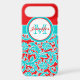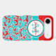 This modern, personalised, turquoise blue, red, and white floral damask pattern Case-Mate Barely There™ iPhone 4 Case has spots for you to add your name, initials, monogram, or other text. If you need help customising this, please email niteowlstudio@gmail.com.