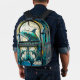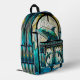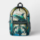 Monogrammed Blue Teal Dolphin Stain Glass look Printed Backpack