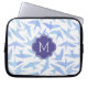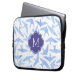 Monogrammed Blue Watercolor Birds Pattern Laptop Sleeve