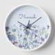 Monogrammed Blue Watercolor Wildflower Meadow Clock