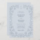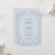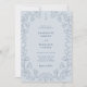 Monogrammed Blue Wedding Invitation. Romantic and timeless, this dusty blue wedding invitation features vintage line art floral roses arranged in a chic frame with a monogram that can be used for any wedding season. Add a touch of modern and classic elegance to your special day with these stylish and beautiful wedding invitations. Navy text on a blue grey background.