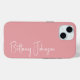 This monogrammed blush pink iphone 15 case is trendy yet and classic. It features your name in a fabulous modern script font in white. It's simple and minimal and professional.