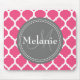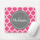 Monogrammed Bright Pink & Grey Quatrefoil Mouse Pad