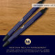 Sign documents and contracts in style with our Monogrammed Business Pen. Crafted for businesses, wealth management firms, and financial services professionals, this pen features a solid navy blue background with a brushed gold business monogram initial emblem. Carry your company's name, address, and contact information with you in classic typography. Showcase professionalism in every signature.
