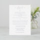 Monogrammed Catholic Wedding Invitation design features the initials of the bride and groom in an elegant silver font displayed at centre top. A small, silver cross is featured just below. Text is fully customisable. Back features a delicate bridal bouquet at bottom right corner. Designed to accompany the "Monogrammed Catholic Wedding Suite".