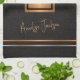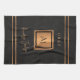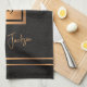 Modern monogram stylish luxury exclusive kitchen restaurant master chef personalised towel featuring a faux gold copper metallic square and stripes over a stylish classy black leather (PRINTED TEXTURE) background. +++++++++ Personalise it with title, name and initials.