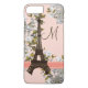 Monogrammed Cherry Blossom Eiffel Tower Case-Mate iPhone Case