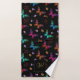 Monogram towel set. Designed with an elegant pattern with a graphic illustration of fluttering butterflies in many bright colours, contrasting very nicely on the black background. Whimsical florals, sprigs and leaves add a bit of charm. A black frame with a gold coloured border layered over top with your personalised monogram initial inside.