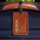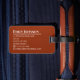 Travel in style with this sophisticated brown leather luggage tag. The classic design features a rich, warm tone reminiscent of fine leather goods, perfect for the discerning traveler. Your name and address details are elegantly displayed in a clean, modern font, ensuring your belongings are easily identifiable. This tag is not just a practical accessory but a statement of refined taste, designed to withstand the rigors of travel while keeping your contact information readily accessible. Make your luggage stand out on the carousel with this timeless and functional piece.