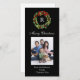 Classic monogram photo card... Tasteful elegance for a traditional Christmas portrait. Use with any photo, horizontal or vertical orientation. This modern, dark black background is the perfect backdrop for an elegant traditional red and green holly wreath painted graphic, with red berries, leaves and a winding red ribbon bow. Include a single letter monogram initial on the inside of the round circular circle wreath. Very stately and proud way of showing the first letter of your last name, while including a family photo to share with family and people who love getting updates of what everyone is looking like these days.
