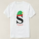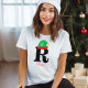 Have a look at a white version of a cool, funny, personalizable piece of your Holiday Season's wardrobe: a Monogrammed Family Christmas Matching T-shirt. This charming tee is an elegant design of your name initial decorated with a cute, snowy elf hat, creating a whimsical and merry ensemble perfect for the season's celebrations. The colours, both in fonts, and in the elf hat, are fully editable.