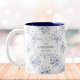 Monogrammed Classic Blue Flowers Floral Pattern Two-Tone Coffee Mug