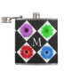 Cute colourful daisy and sparkling black rhomboid. Optional monogram