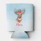 Modern boho deer with colourful flowers over gradient blue background. Optional monogram