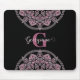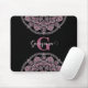 Monogrammed Dusky Rose Floral Fronds Dot Mandala Mouse Pad