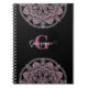 Monogrammed Dusky Rose Floral Fronds Dot Mandala Notebook