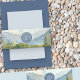 Monogrammed Dusty Blue Mountain Wedding Invitation Belly Band