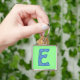A very pretty Keychain with the initial 'E' in a blue and green floral pattern on a light green background. You can easily change the shape and size of the keychain as well as the background colour (by using the Customise button). And if you see one of my other patterns that you prefer, please contact me through my store and I will create one at no extra charge.
