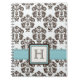 Monogrammed Eggshell Blue Brown Damask Spiral Note Spiral Notebook